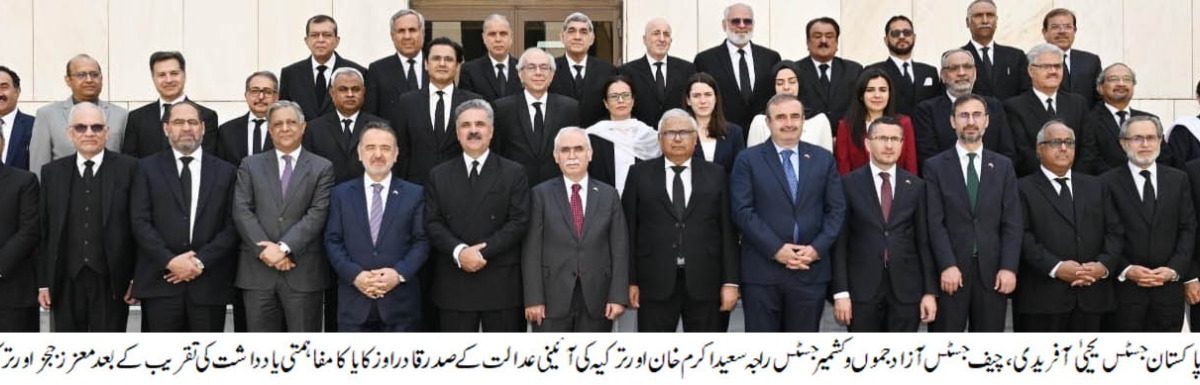 ڈیلی دومیل نیوز،چیف جسٹس سپریم کورٹ آزاد جموں و کشمیر، جسٹس راجہ سعید اکرم خان نے سپریم کورٹ آف پاکستان اسلام آباد میں منعقدہ ایک باوقار تقریب میں شرکت کی، جہاں سپریم کورٹ آف پاکستان اور جمہوریہ ترکی کی آئینی عدالت کے درمیان مفاہمتی یادداشت پر دستخط کیے گئے۔ اس مفاہمتی یادداشت کا مقصد دونوں ممالک کی اعلیٰ عدلیہ کے درمیان باہمی تعاون کو فروغ دینا، قانونی مہارت کا تبادلہ اور جدید عدالتی طریقہ کار کو اپنانا ہے۔تقریب میں چیف جسٹس آف پاکستان جسٹس یحییٰ آفریدی اور ترکی کی آئینی عدالت کے صدر قادر اوزکایا نے مفاہمتی یادداشت پر دستخط کیے۔ اس موقع پر وفاقی آئینی عدالت کے چیف جسٹس، معزز ججز، مختلف صوبوں کے ہائی کورٹ کے چیف جسٹس صاحبان، ڈسٹرکٹ جوڈیشری، وکلاء اور مختلف مکاتبِ فکر سے تعلق رکھنے والی نمایاں شخصیات کی بڑی تعداد نے شرکت کی۔مزید برآں، شام کے وقت چیف جسٹس آف پاکستان کی جانب سیمنعقدہ اعشائیہ میں بھی چیف جسٹس آزاد جموں و کشمیر جسٹس راجہ سعید اکرم خان نے شرکت کی، جہاں معزز مہمانوں کے ساتھ غیر رسمی ملاقات اور تبادلہ خیال بھی ہوا۔