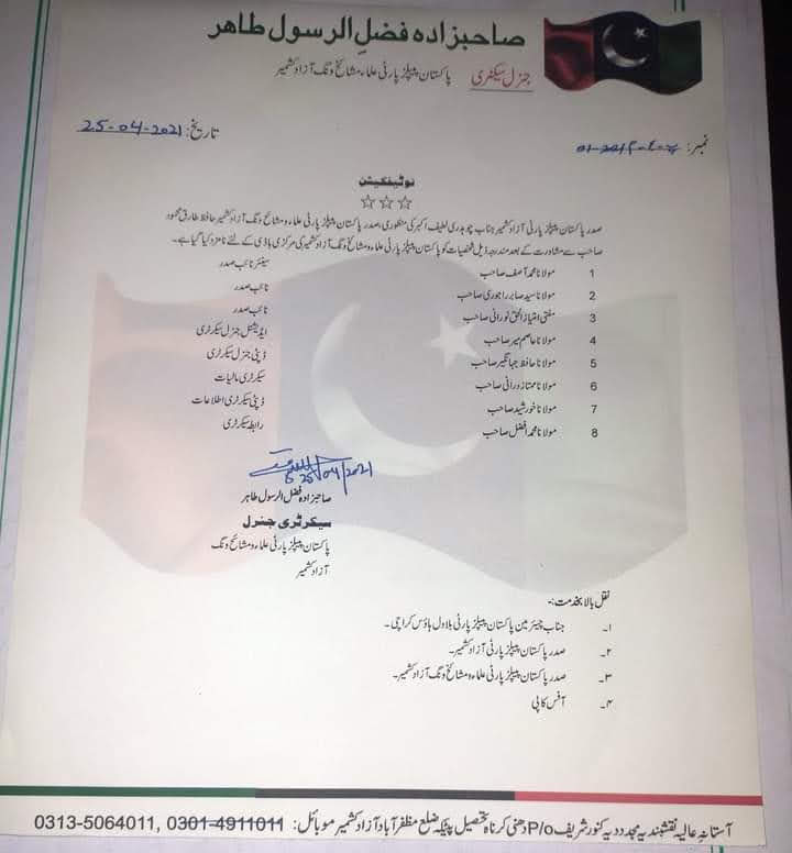 واضح رہے کہ مفتی امتیازالحق نورانی نے مورخہ 25 اپریل 2021 کو چیئرمین پاکستان پیپلز پارٹی علماء و مشائخ ونگ آزاد کشمیر علامہ حافظ راجہ طارق محمود کے اصرار پر علماء مشائخ ونگ آزاد کشمیر کے مرکزی نائب صدر کا منصب سنبھالا تھا۔