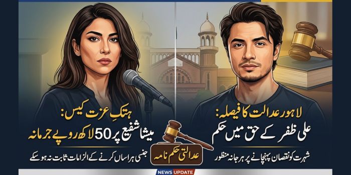 ⚖️ ہتکِ عزت کیس: لاہور کی عدالت کا میشا شفیع کو علی ظفر کو 50 لاکھ روپے ہرجانہ ادا کرنے کا حکم